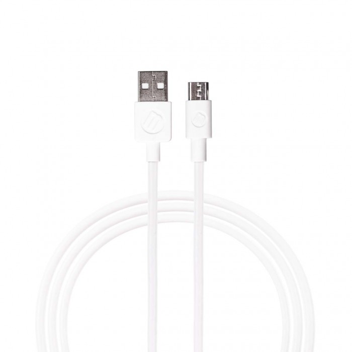 Przewód Micro USB w kolorze białym do ładowania i synchronizacji danych umożliwia ładowanie dowolnego kompatybilnego urządzenia i przesyłanie danych. Długość przewodu wynosi ponad 2 metry, co pozwala na komfortowe odłożenie ładującego urządzenia. Kabel w standardzie USB 2.0 pozwala na transmisję danych z prędkością do 480 Mb/s.